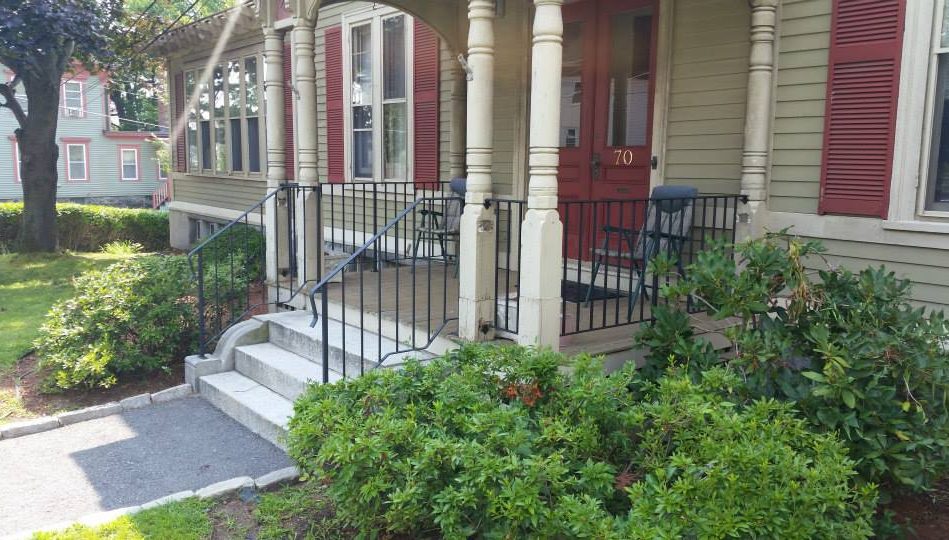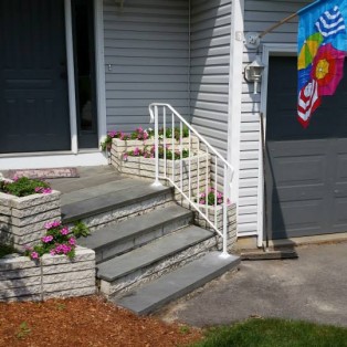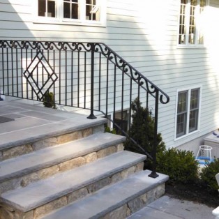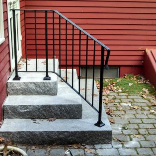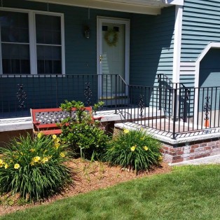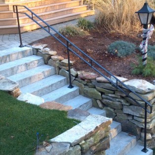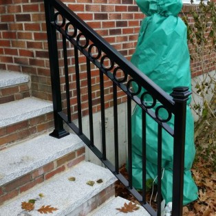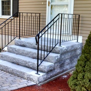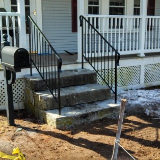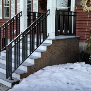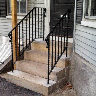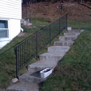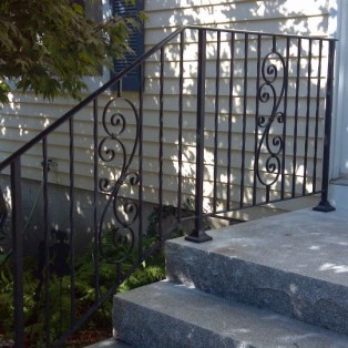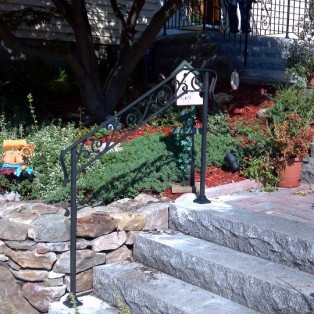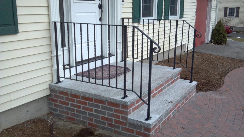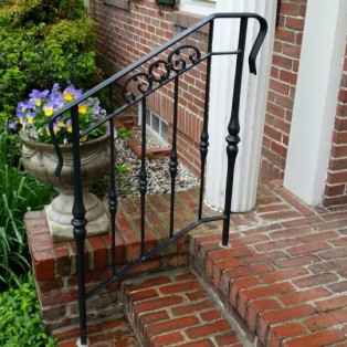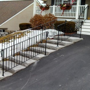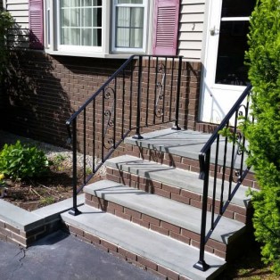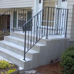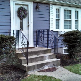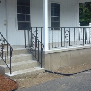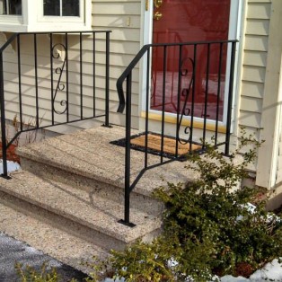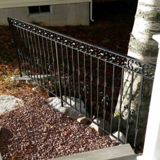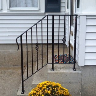 Custom fabricated wrought iron railings will add beauty and practicality to any entrance or area of your home/business. They are a must have for people with mobility issues and are extremely useful come winter time. Whether you want a simple basic railing or one with a little more decoration, we have plenty of options for you to choose from. All of our railings come standard with a wrought iron flat black paint. We also offer a powder coat finish which comes in a variety of colors and has a longer life than traditional paint. We can fabricate a railing for you to match any of the railings below. Feel free to check out even more pictures on our Facebook page. If you have another design in mind custom fabricating is available. Call or email us today to schedule a free estimate.